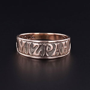 Antique 9ct Gold Mizpah Ring - This sentimental Mizpah ring (circa 1890-1900) is crafted from 9ct gold. The word Mizpah—a Hebrew term meaning "watchtower"—symbolizes protection and remembrance, often interpreted as "May God watch over you." A cherished token of love and separation, Mizpah jewelry was popular during the Victorian era.