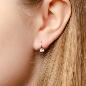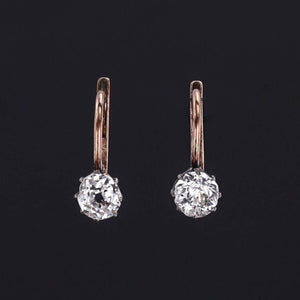 These 14k gold lever back earrings feature old mine cut diamonds of G-J color, I1 clarity set in silver prongs. Each diamond has a weight of approximately 0.27ct for a total carat weight of 0.54ct.