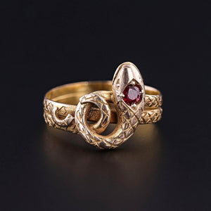 Antique Snake Ring: This antique ring (circa 1900) features a snake of 15ct gold with a ruby at its crown.