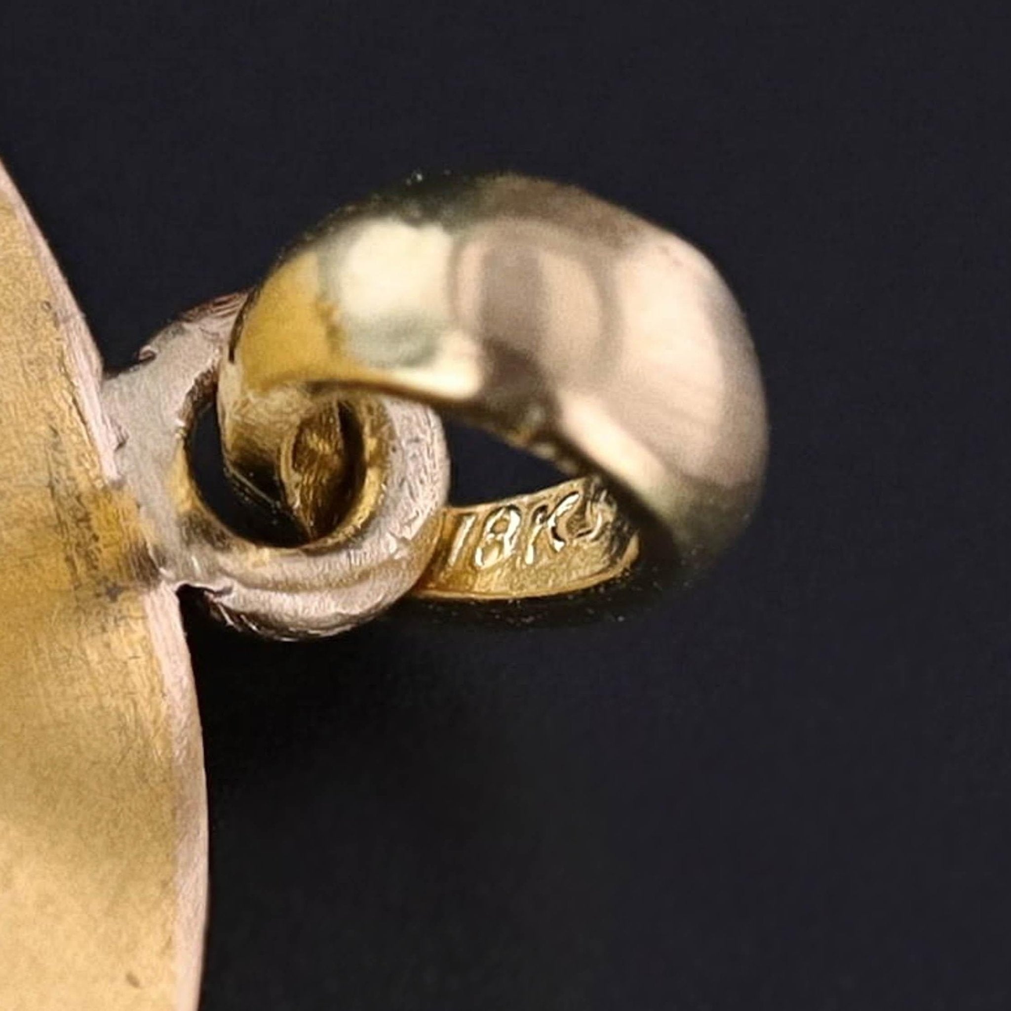 The pendant measures approximately 1.4 inches in length by 1.1 inches in width, weighs 8.59 grams, and is in very good antique condition, retaining its original bloom finish and crisp detail.