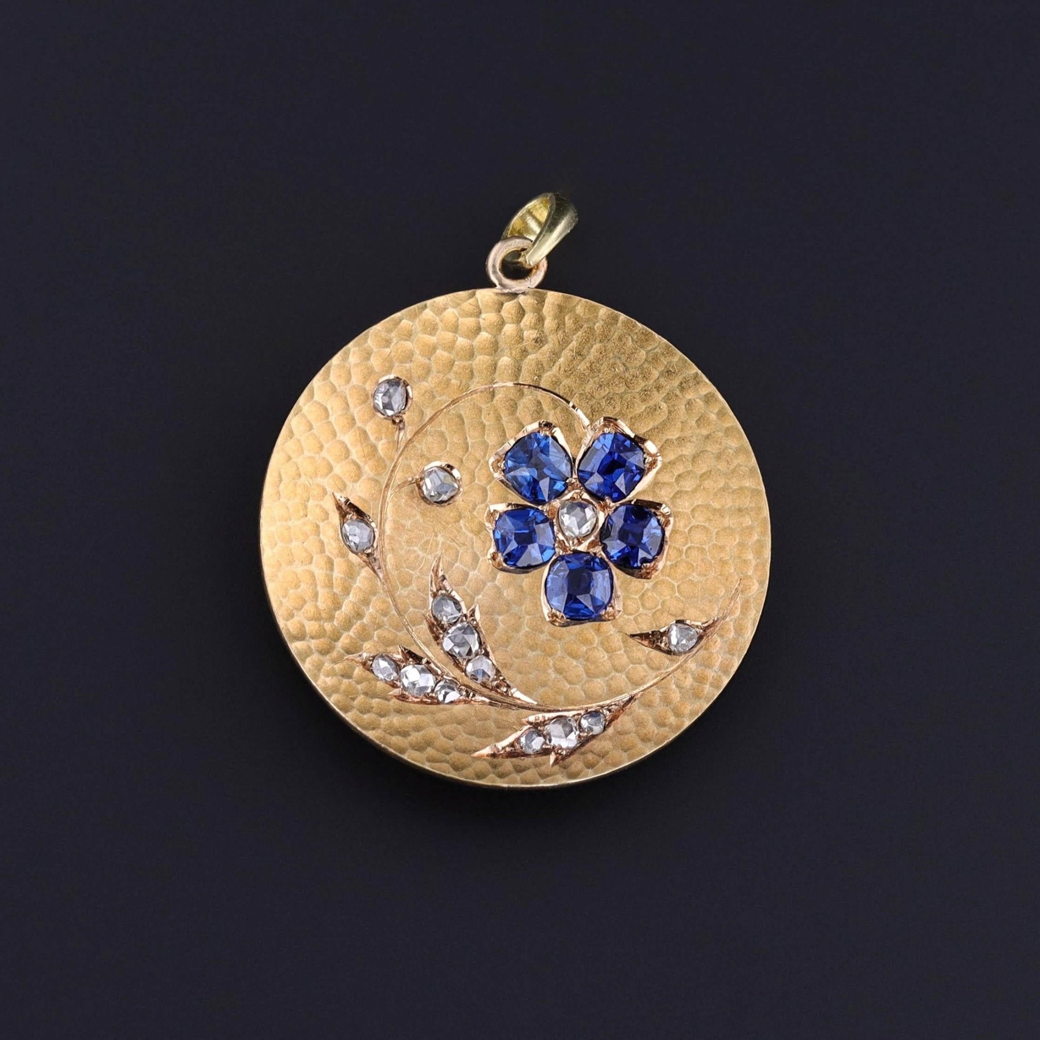 A striking jewel of the Art Nouveau era (circa 1890–1910), this pendant showcases the movement’s signature celebration of natural forms and fine artistry. The surface is crafted in hammered 18k bloomed gold, its softly textured finish providing a rich backdrop for a floral motif of exceptional detail.