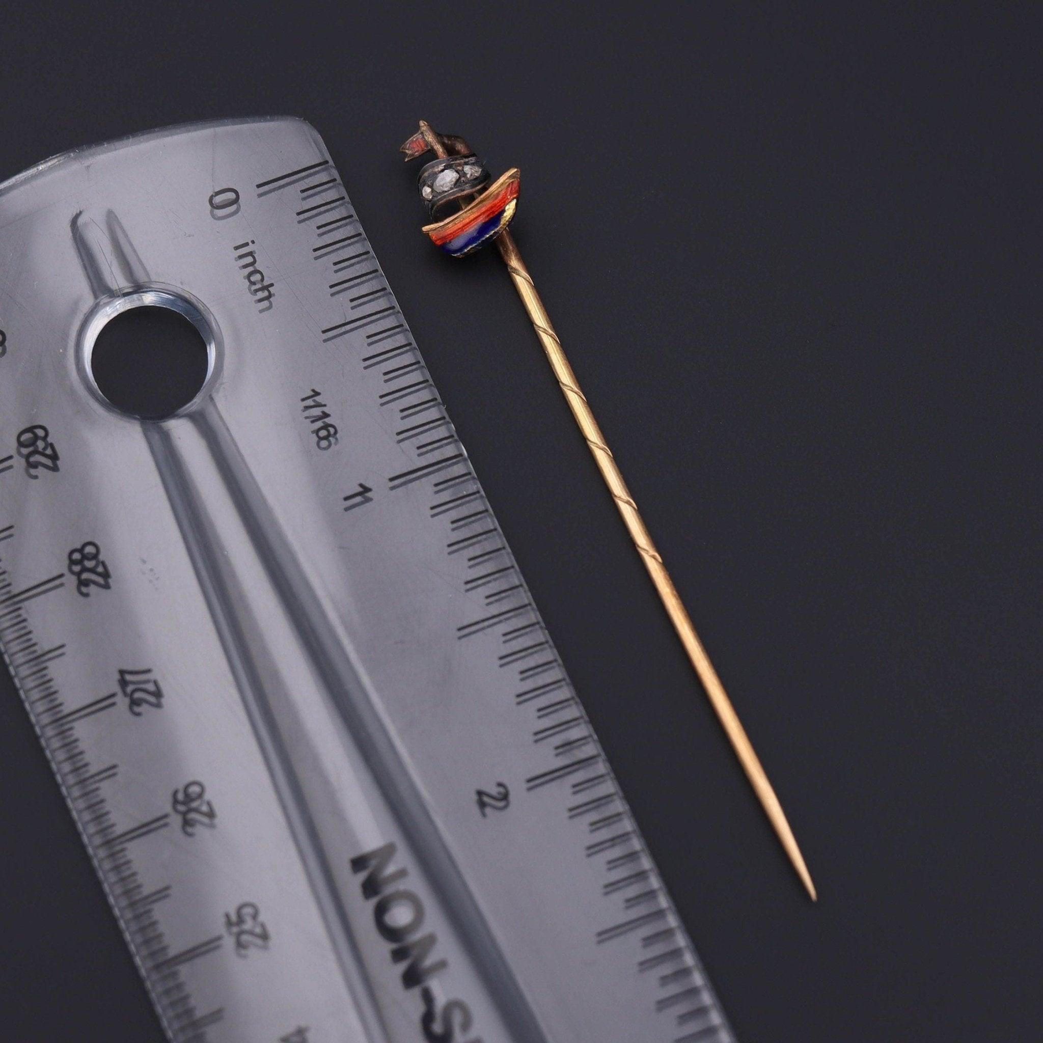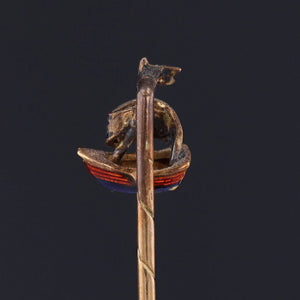 Antique Diamond and Enamel Sailboat Stickpin 14k Gold