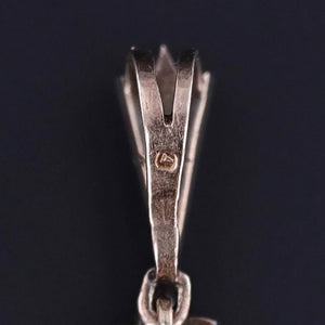 The pendant is composed of silver-topped 14k yellow gold, measuring 2 inches in height by 1.2 inches in width. Though unmarked for gold content, the piece bears several “G.H.” maker’s marks along with a bale stamped with the letter “A.” The bale itself is screwed into place, underscoring the original intent for this jewel to serve as a convertible design—meant to be worn in multiple ways.