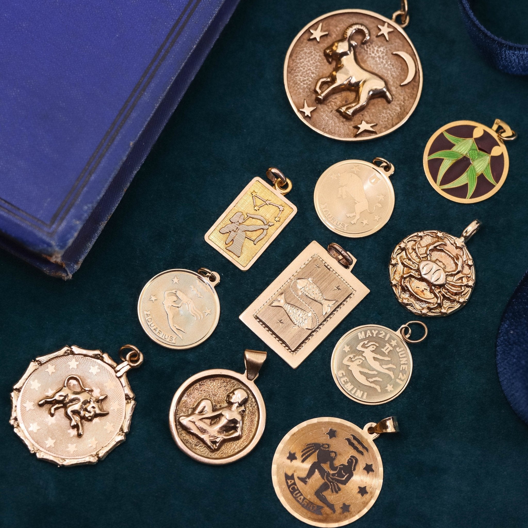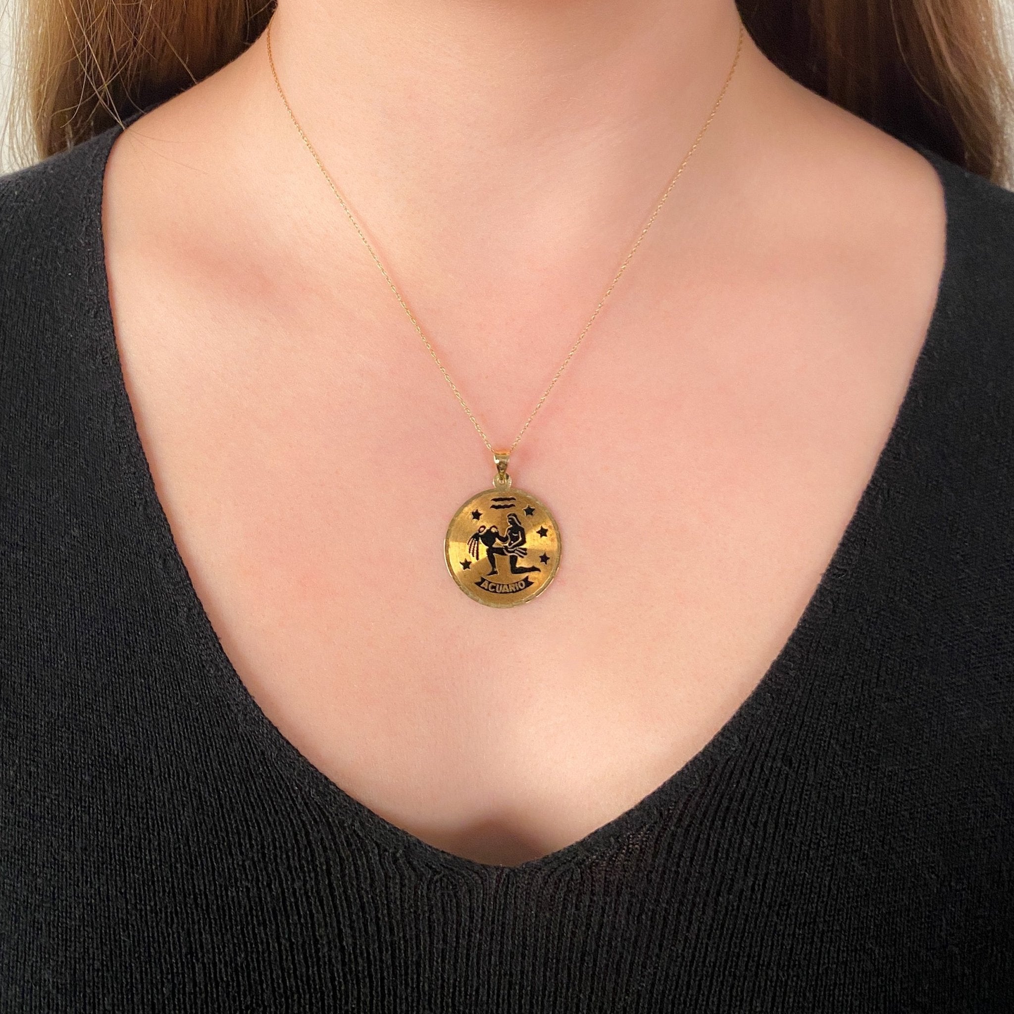 Celestial and bold, this vintage Aquarius charm is crafted in 14k gold and accented with striking black enamel. Inscribed “Acuario”, the design honors those born under the sign of the water bearer — symbolizing vision, originality, and wisdom.