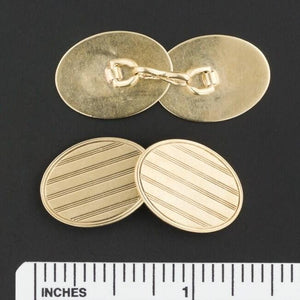 This classic pair of yellow gold cufflinks from the Art Deco era (circa 1930-1935) is the epitome of polished elegance and classic design. They feature a bold linear design with timeless appeal.