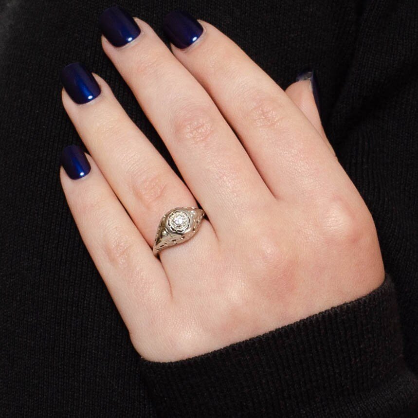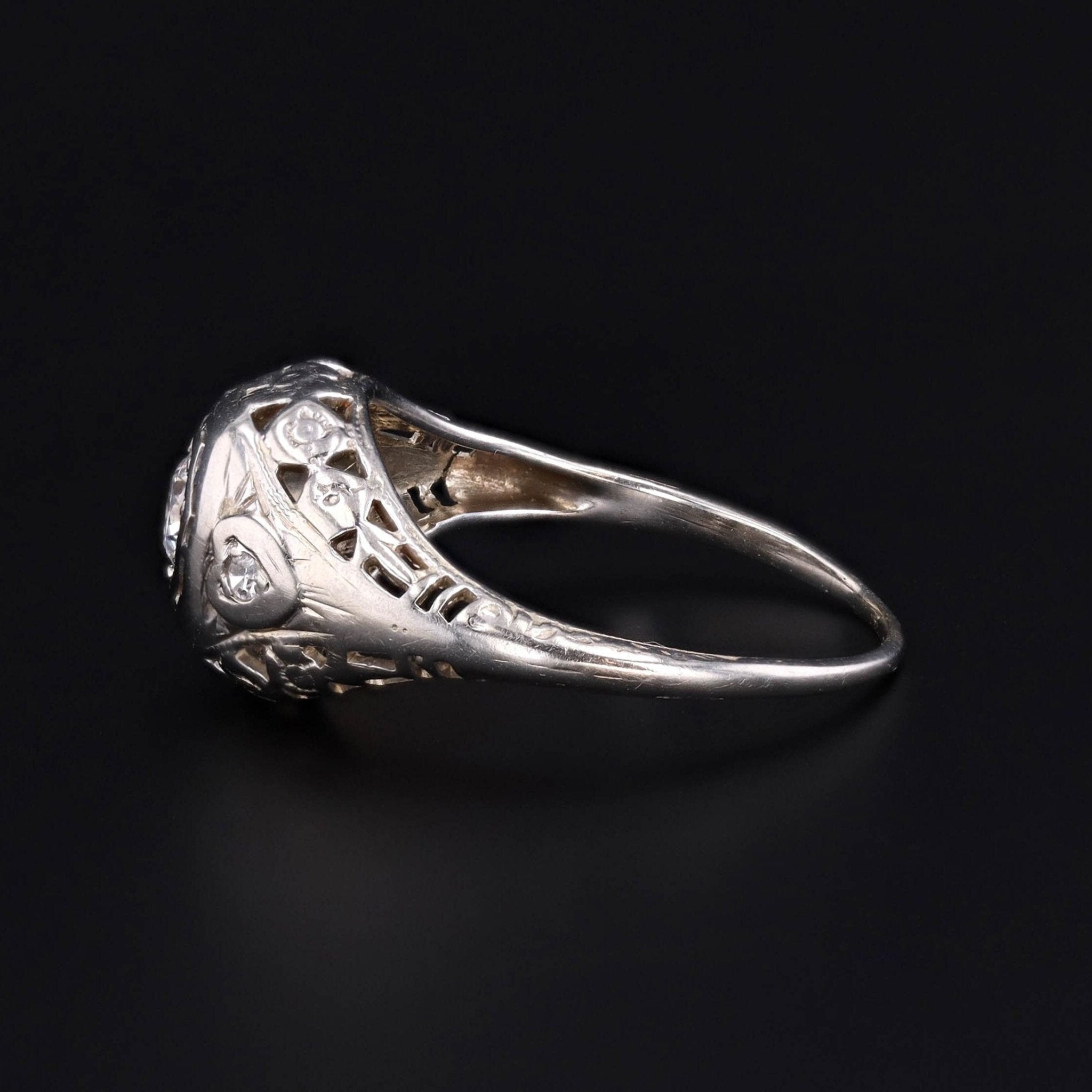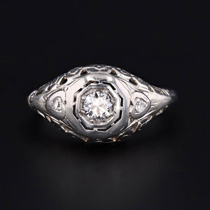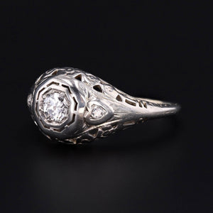 Art Deco Diamond Filigree Engagement Ring of 18k White Gold