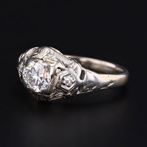 Art Deco Diamond Filigree Ring of 18k White Gold