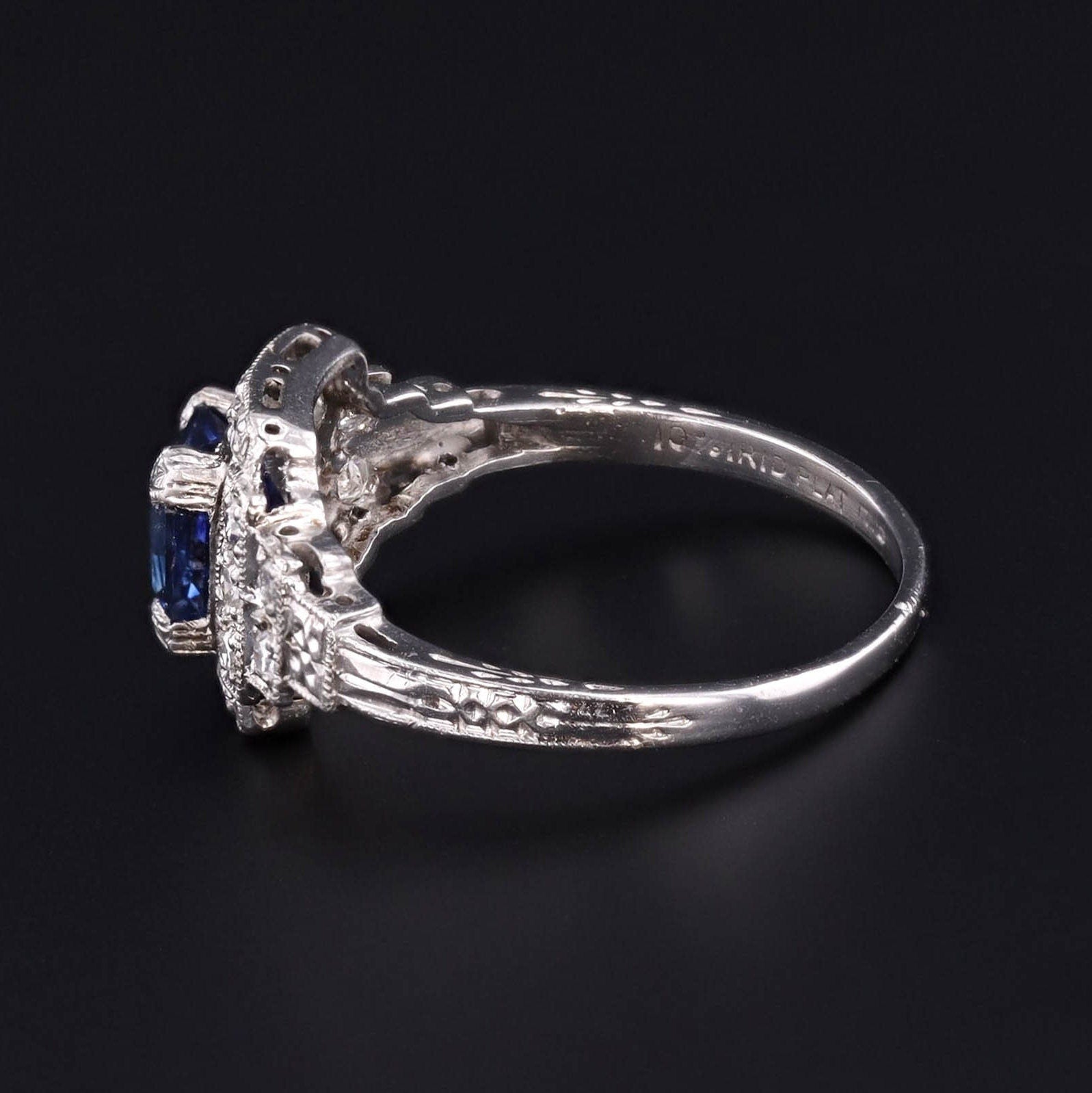 This gorgeous Art Deco ring (circa 1920-1930) marries diamonds, a symbol of unbreakable love and strength with sapphire, a symbol of faith, truth, and the heavens.