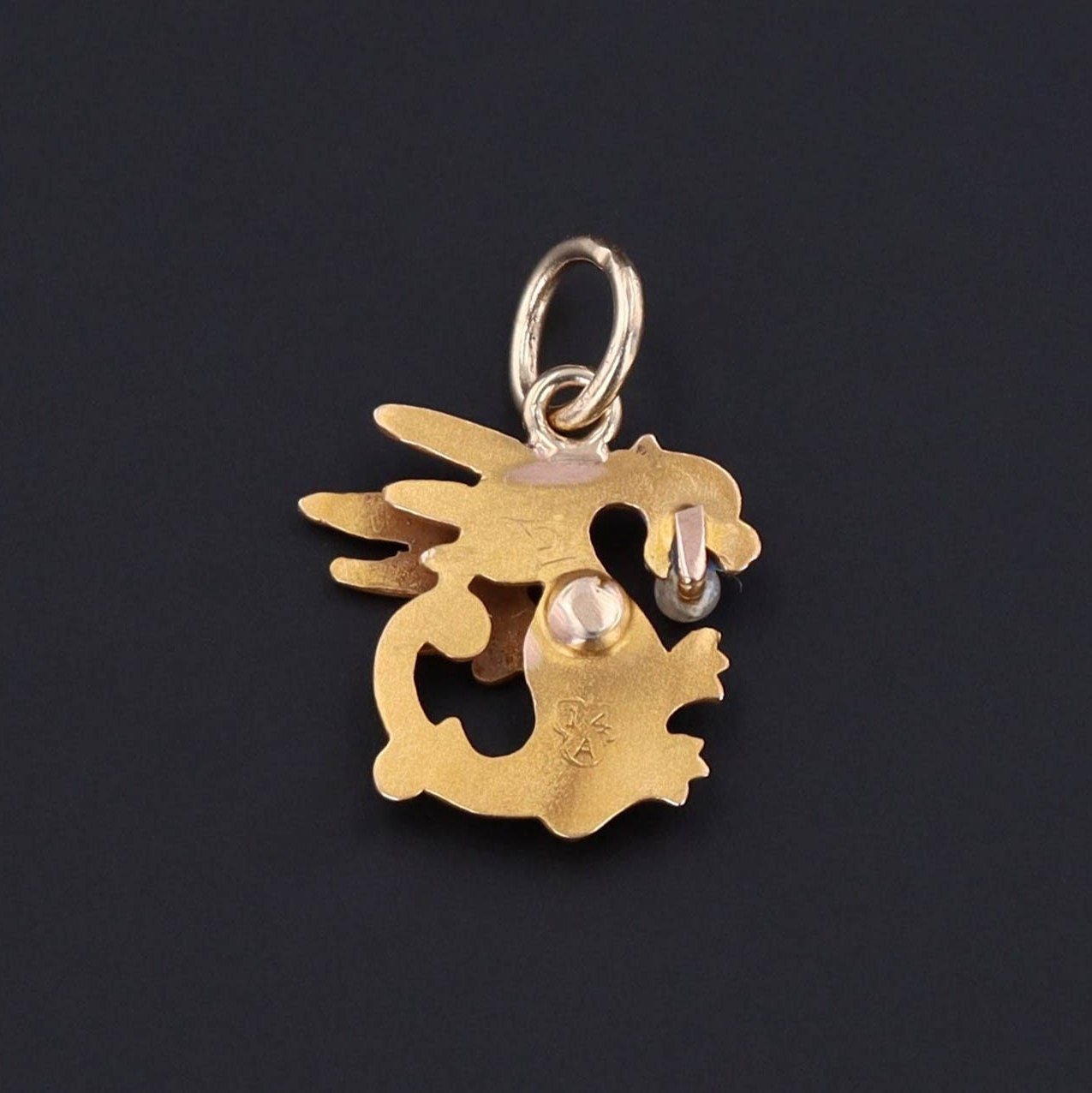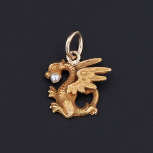The 14k gold griffin is accented with a pearl and is marked 14k on the reverse.