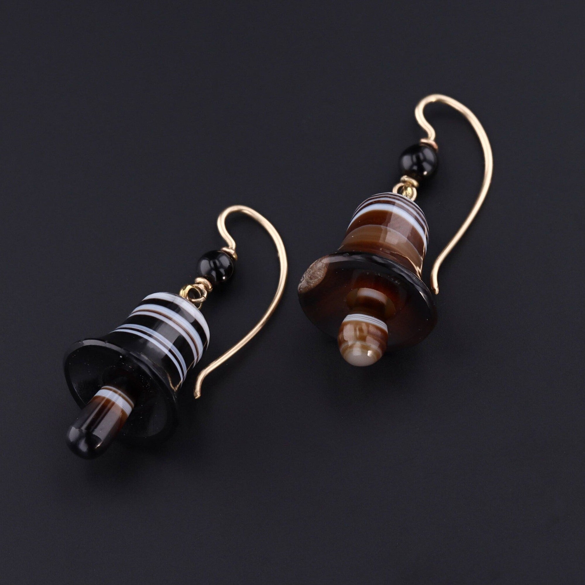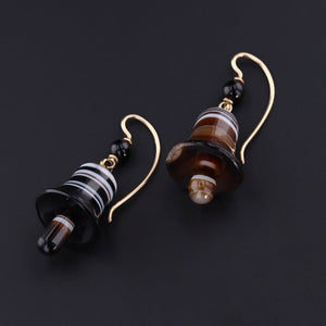 These elegant banded agate earrings (circa 1880-1910) dangle in the shape of a bell and are the perfect addition to any music lovers wardrobe.