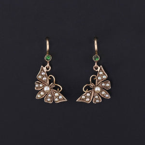 Antique Pearl and Garnet Butterfly Conversion Earrings of 14k Gold