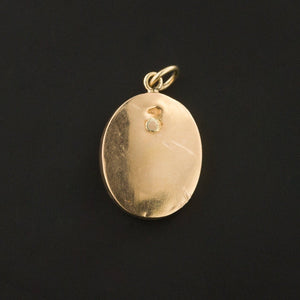 Our jeweler transformed the stick pin into a charm by removing the pin stem and welding on a 14k gold jump ring bail.
