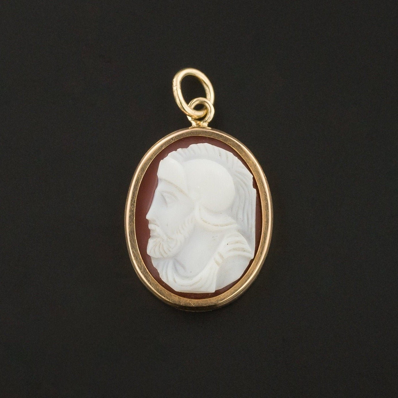 The hardstone cameo is finely rendered and set in 14k gold. It was originally a vintage stick pin and it bears hallmarks indicating that it was made in Hungary (circa 1922-1930).