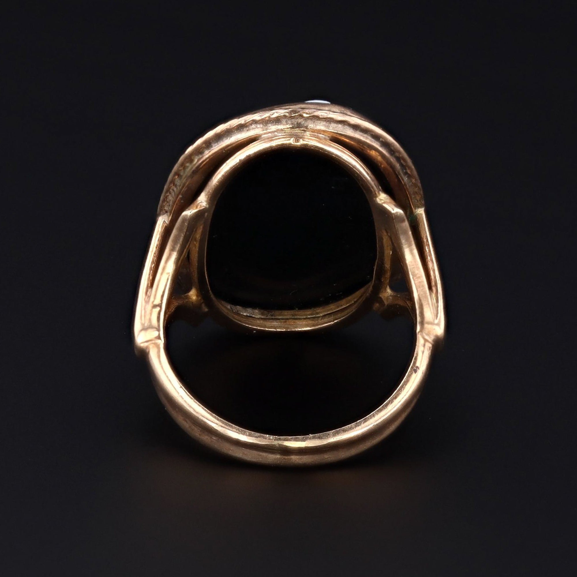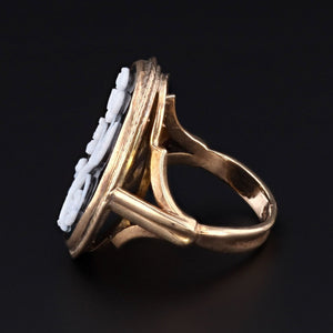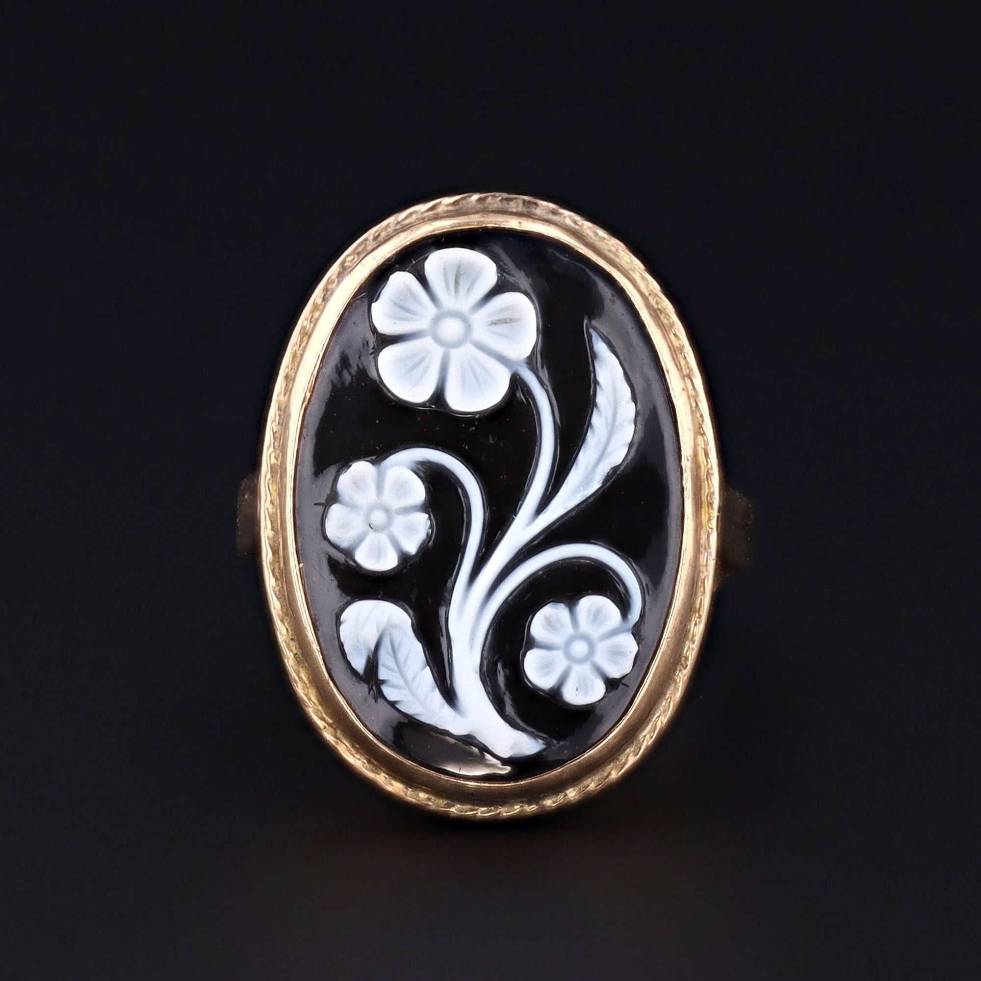 A striking black and white floral cameo ring from the Victorian era (circa 1880-1900).