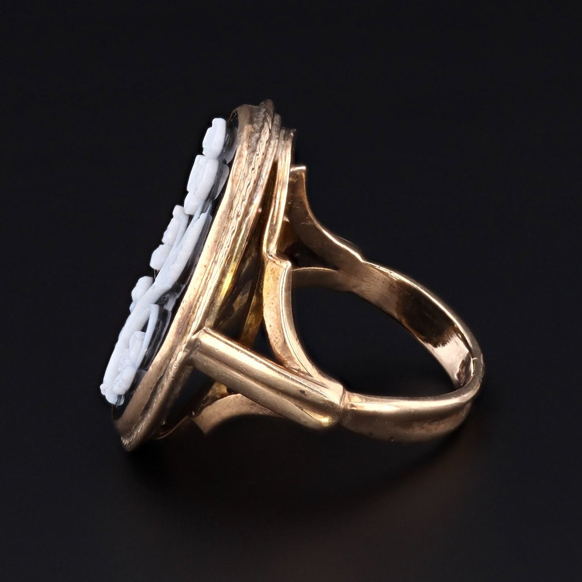 Carved Banded Agate Flower Ring | Antique Flower Cameo Ring