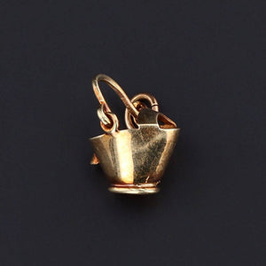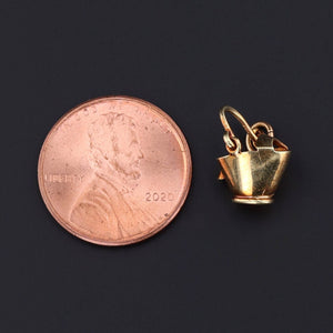 This vintage charm (circa 1940-1950) features a coal bucket of 14k gold with a handle that moves back and forth.