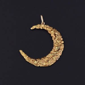 This crescent moon pendant was originally an antique Gold Rush era brooch from Sutter Creek in Nome Alaska (circa 1900). It is 14k gold with natural gold nuggets and is marked "Sutter" and "Nome" on the reverse.