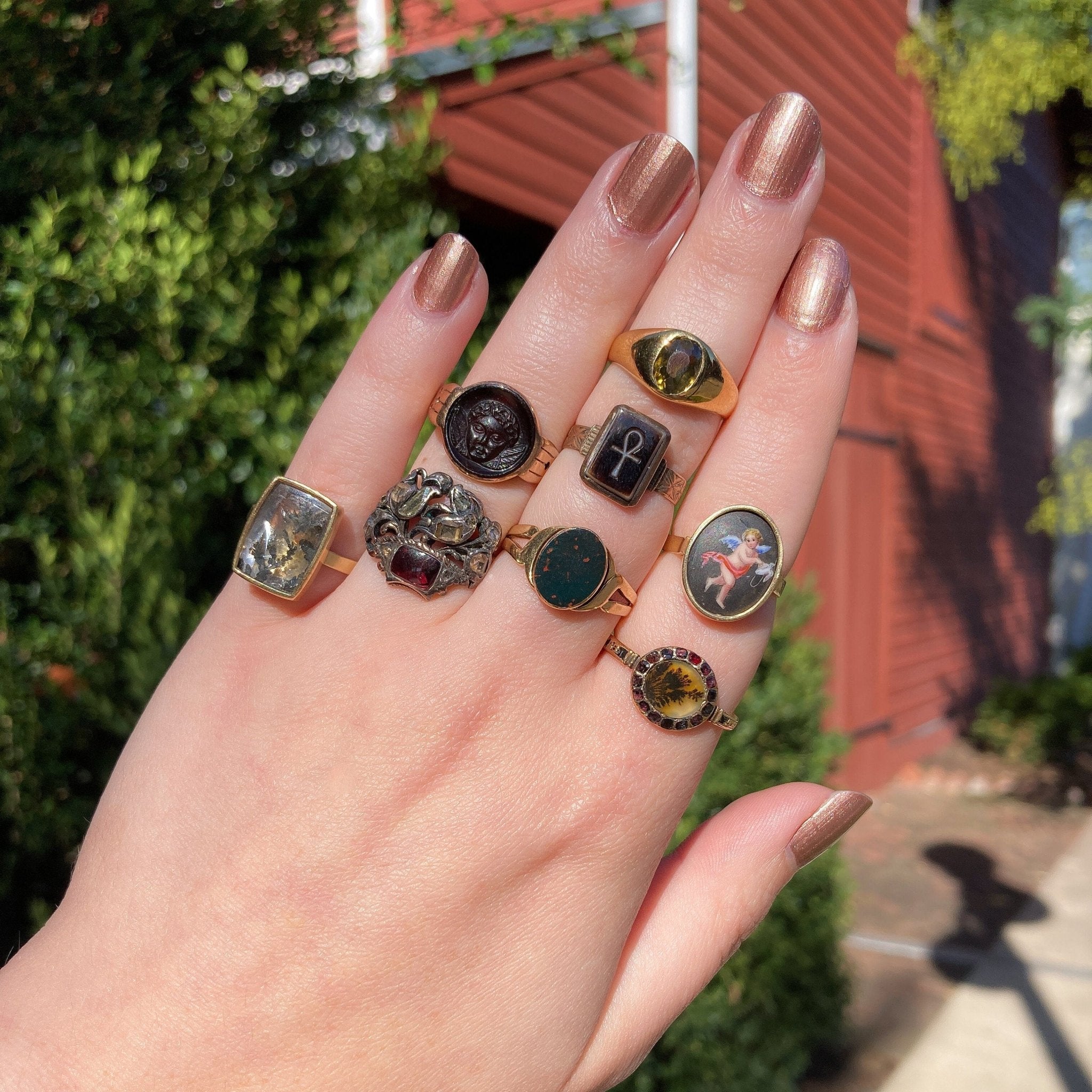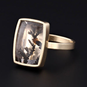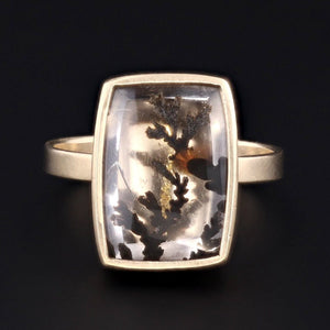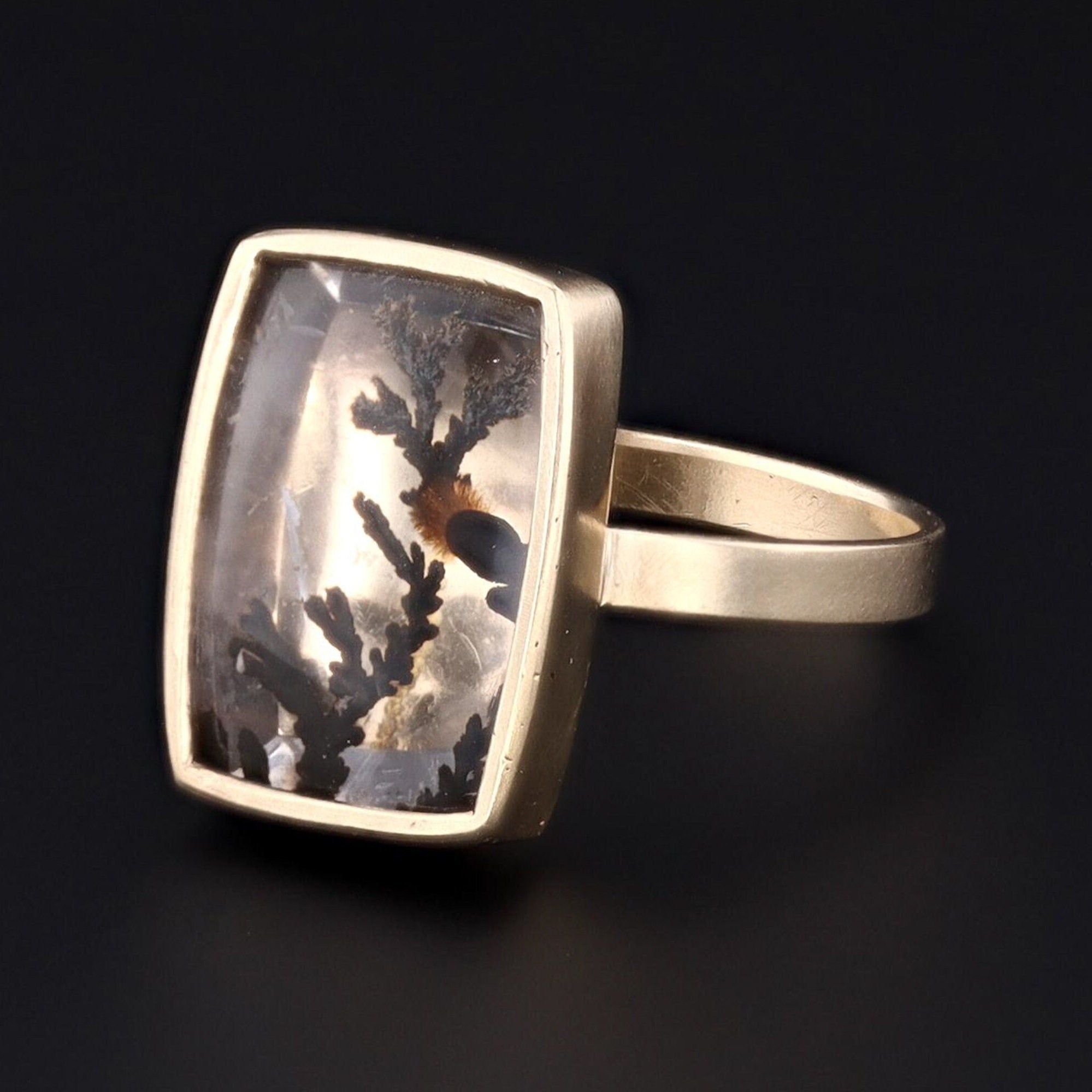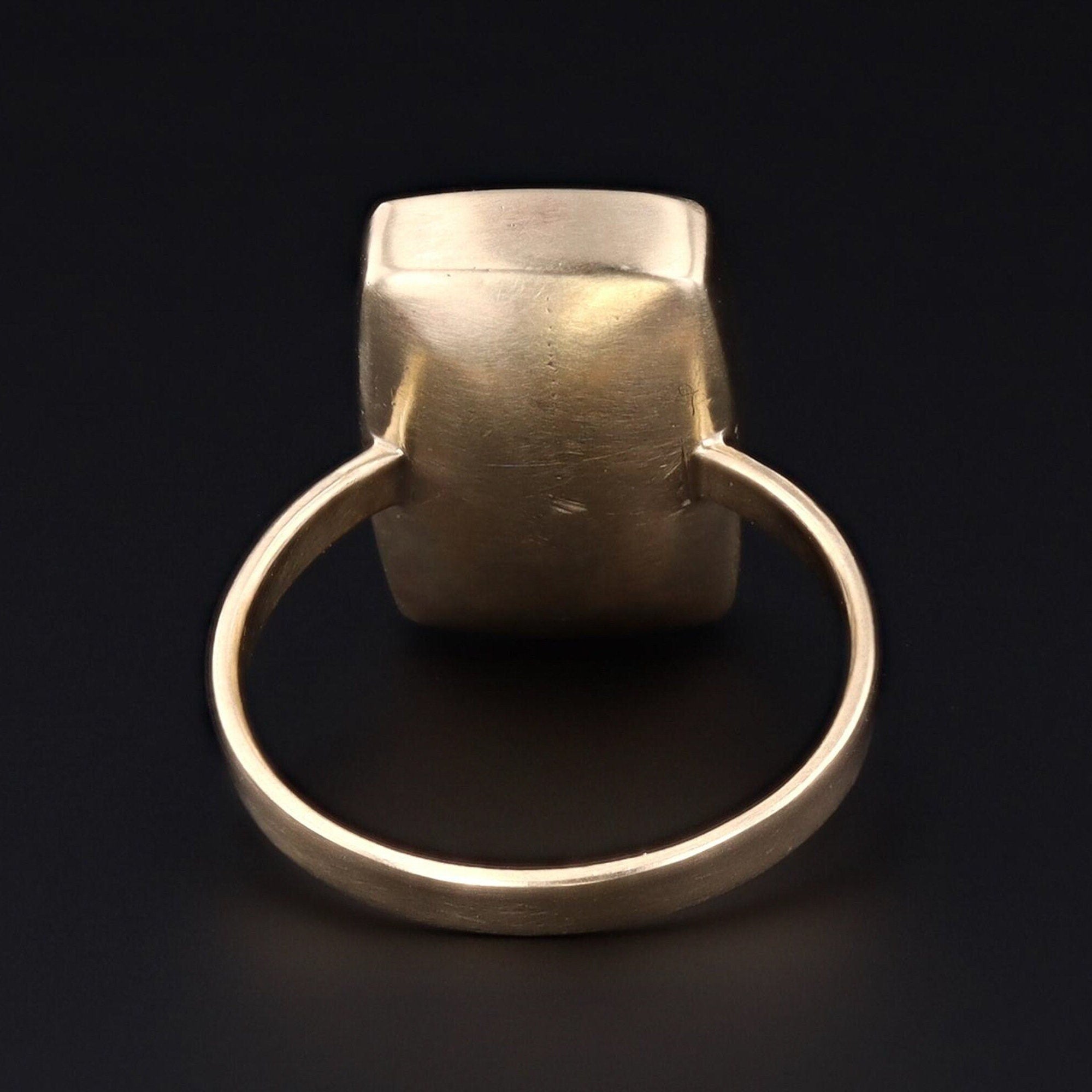 We worked with our jeweler to create this one-of-a-kind ring from a hand selected stone. He built a substantial custom 14k gold mounting for the piece so that it fits quite comfortably on the finger.