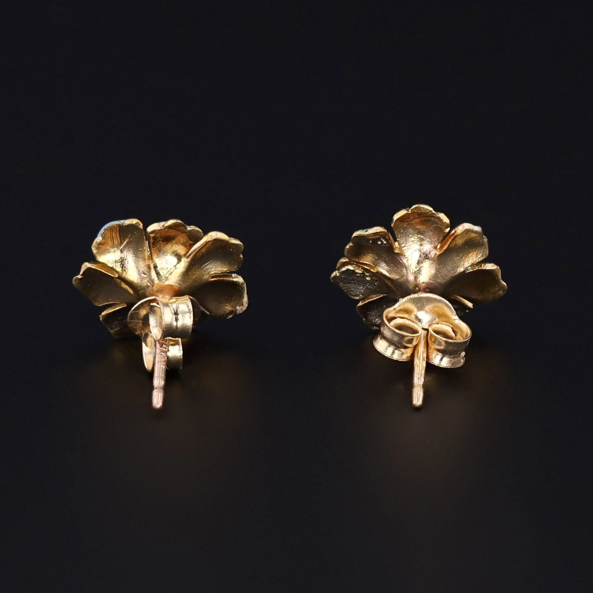 The flowers were originally part of an antique brooch (circa 1910-1920) that were transformed with the addition of repurposed 14k gold posts.