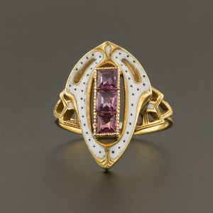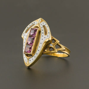 Garnet & White Enamel Ring | Antique Ring
