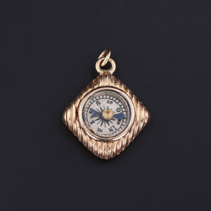 The pendant measures 0.9 inches from top to bottom by 0.7 inches wide. It is unmarked, but the case acid tests for 14k gold. The bezel used to hold the compass is gold plate.
