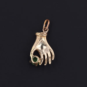 The golden hand was originally a 14k gold vintage stick pin (circa 1940-1950) transformed with the addition of a 14k gold jump ring bail.