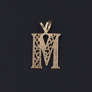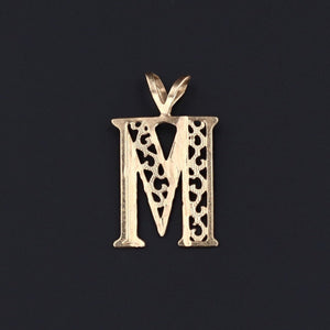 This 14k gold letter M pendant measures 0.75 inches from the top of the bail to the bottom of the letter by 0.5 inches wide, and it's in great condition.