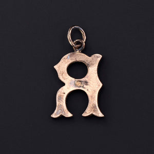 This letter R charm was originally an antique pin (circa 1890-1910). The charm is gold plated with rose cut garnets.