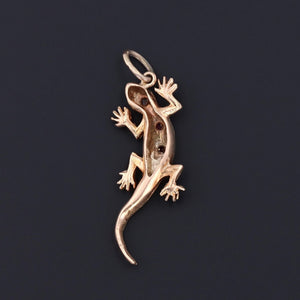 This fun charm features a 14k gold lizard with a textured body glistening with sparkling ruby and diamond accents.