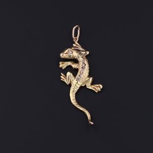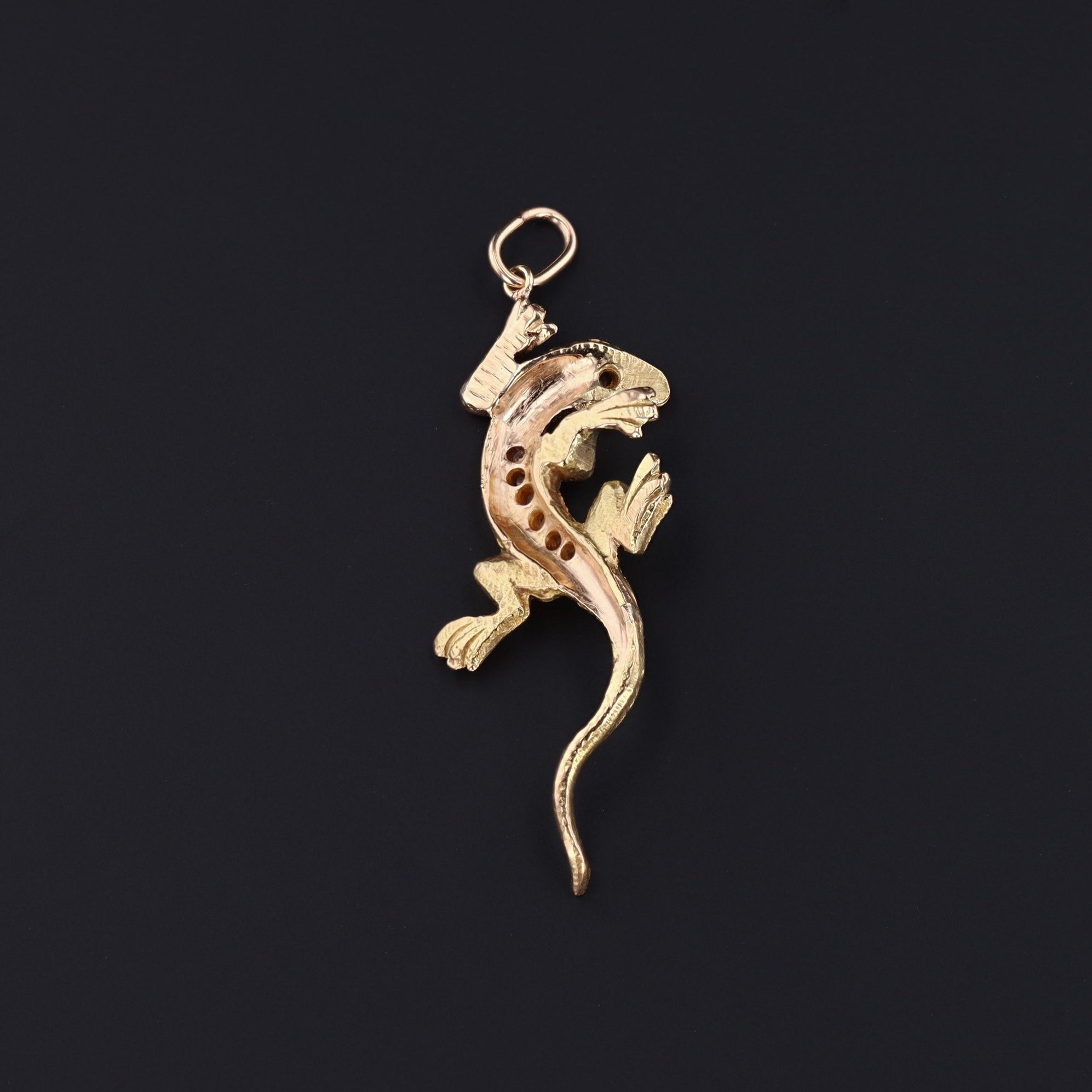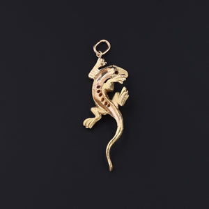 This fun pendant features a 14k gold lizard with emerald eyes and sparkling rose cut diamond accents.