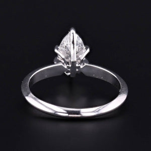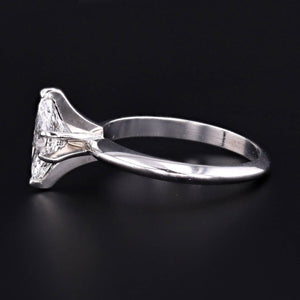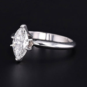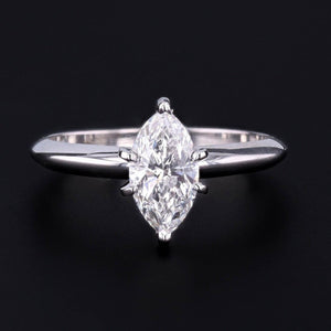 An elegant diamond engagement ring featuring a 0.91 carat marquise modified brilliant diamond of F-G color, SI3 clarity set in a 14k white gold mounting.