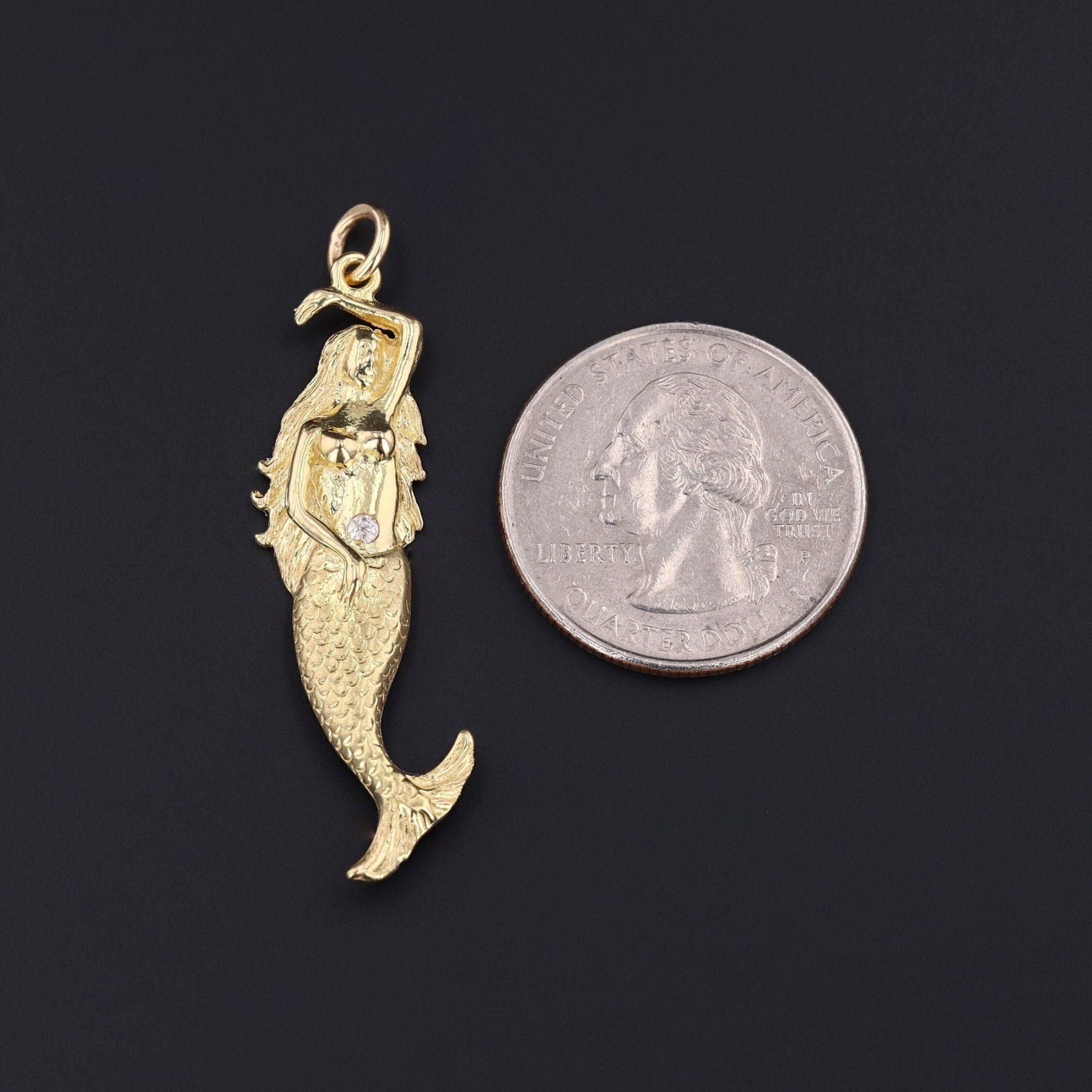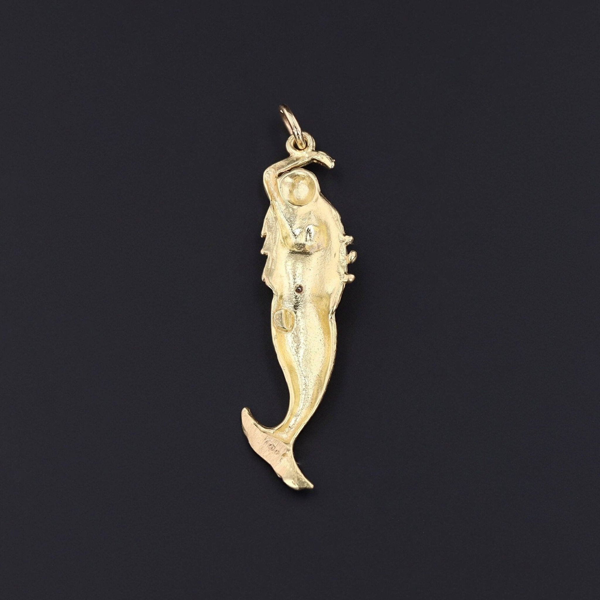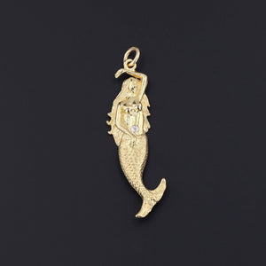 This vintage pendant (circa 1980-1990) features a mermaid of 18k gold with a single diamond accenting her stomach.