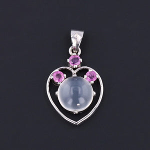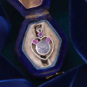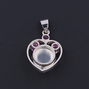 Softly feminine yet timeless in appeal, this moonstone and ruby heart pendant captures the spirit of love and devotion — perfect as a sentimental gift or as a charming addition to a curated collection of symbolic jewelry.