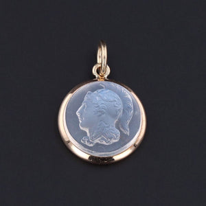 An ethereal hand carved moonstone cameo charm created from an antique pin (circa 1910-1920).