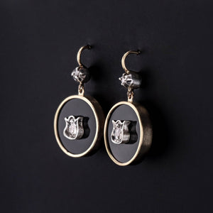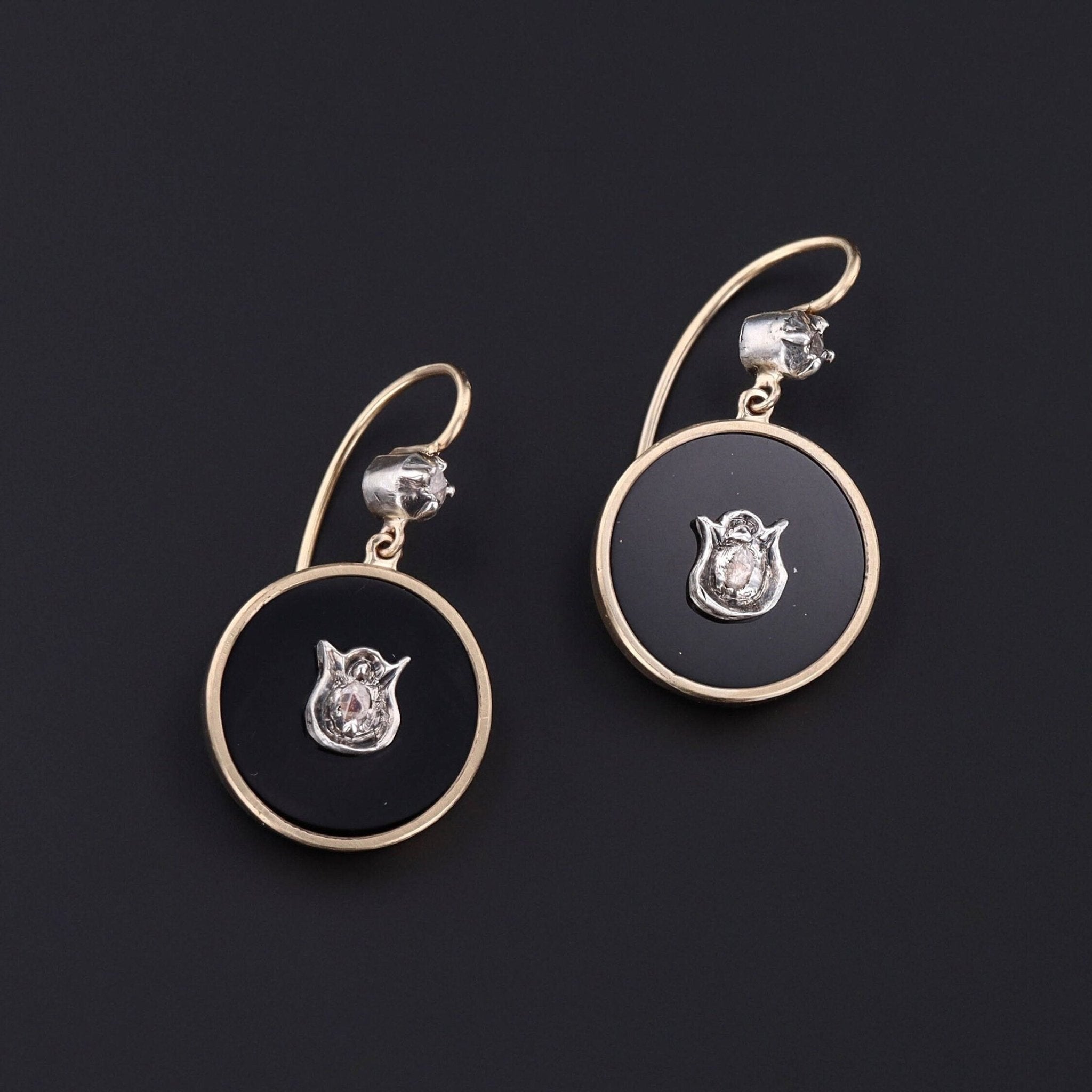 Striking in both silhouette and story, these 14k gold onyx drops marry the sleek drama of glossy black with the sparkle of antique, upcycled diamond components. The transformation blends modern minimalism with the romance of reclaimed heirloom jewels, creating a pair that feels both timeless and relevant.