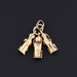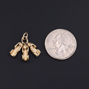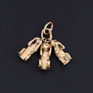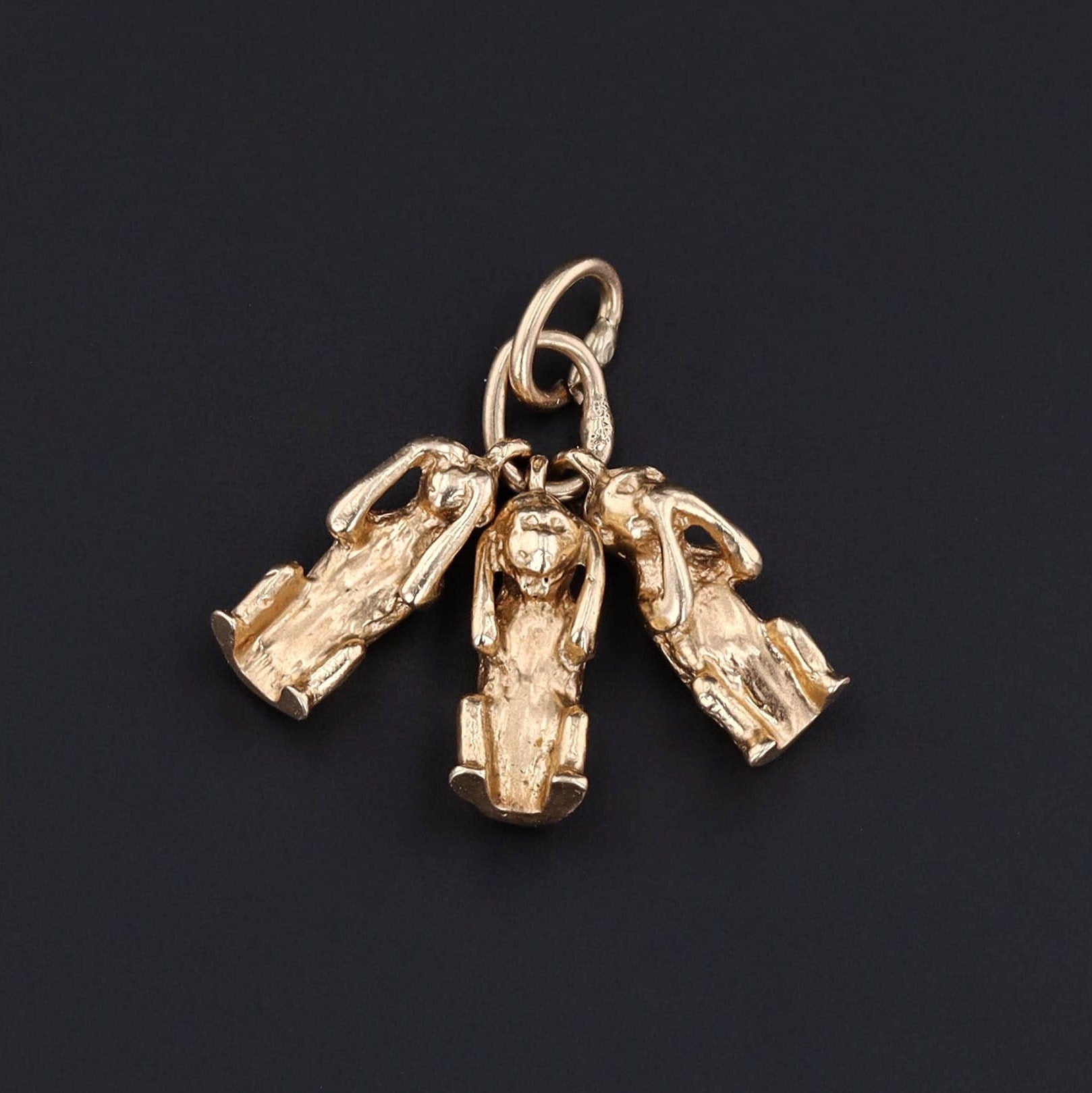 This vintage charm (circa 1950-1960) features three, 14k gold monkeys on a jump ring.