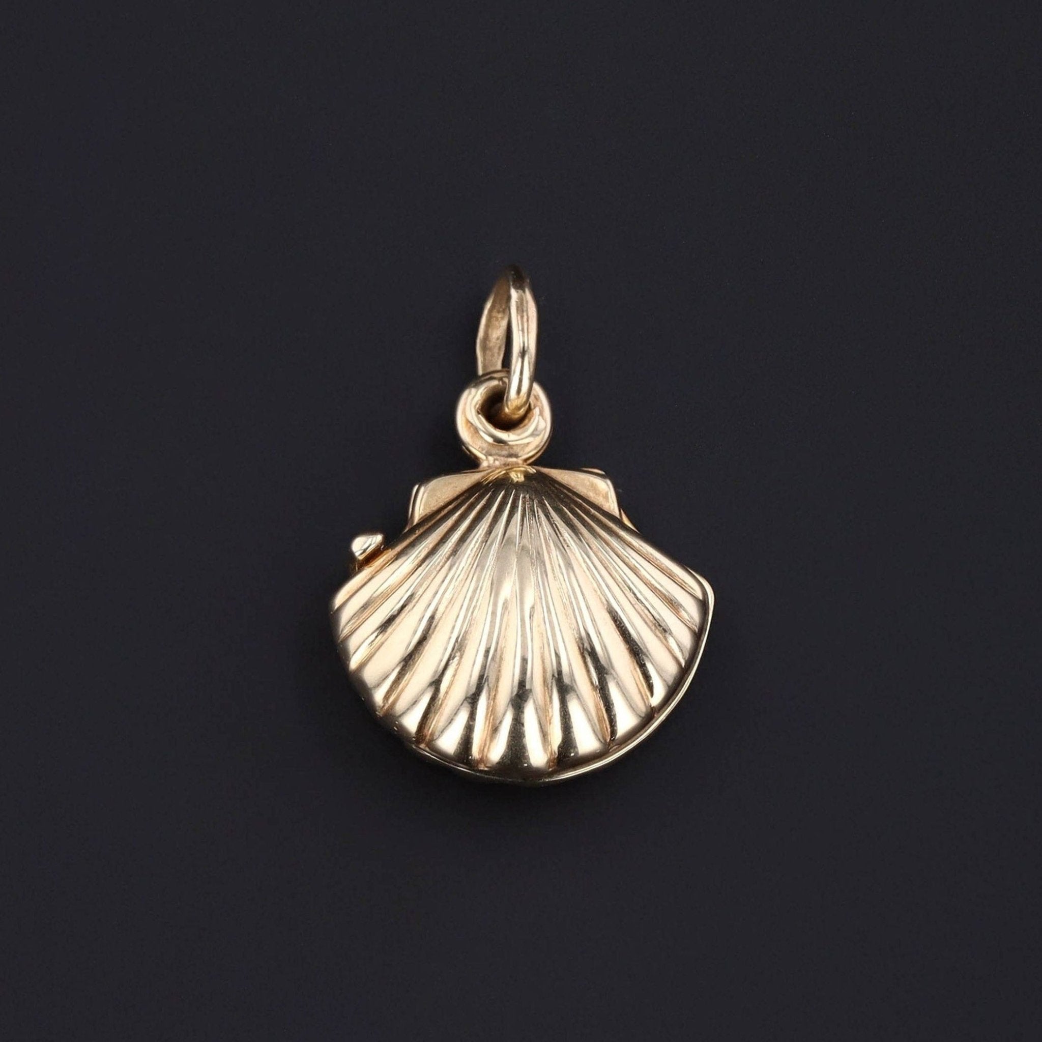 This vintage locket (circa 1940-1950) features a shell of 14k gold that slides open for a photo or keepsake.