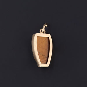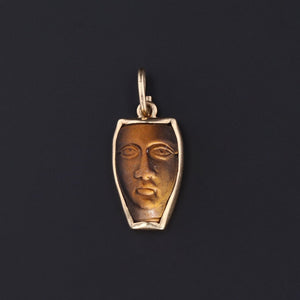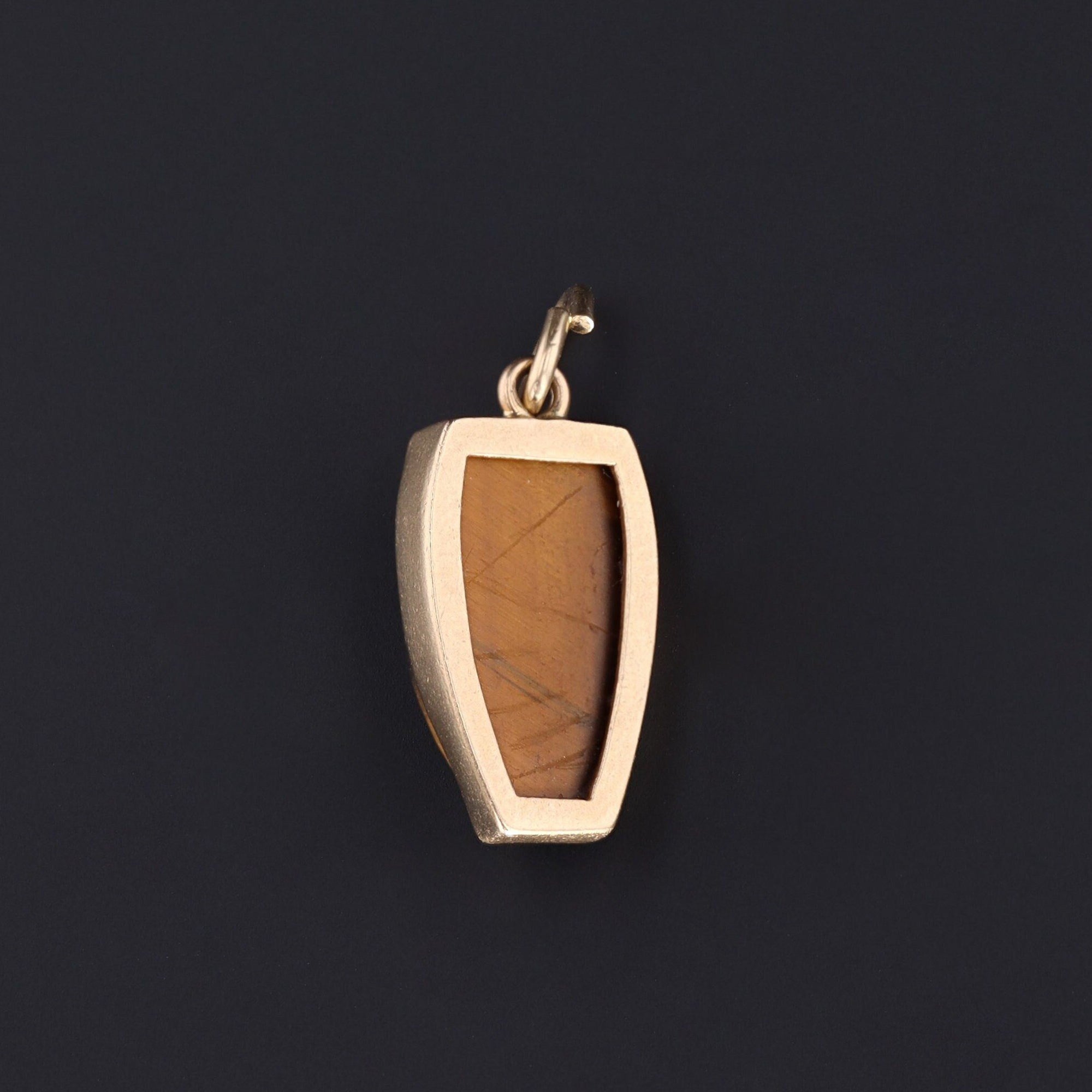 This antique charm features a hand carved tiger's eye face mounted in 14k gold (unmarked, but acid tested).