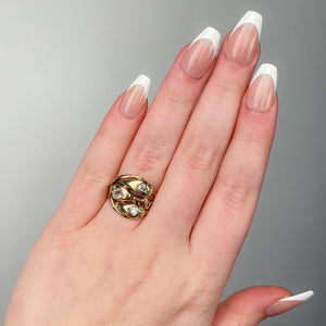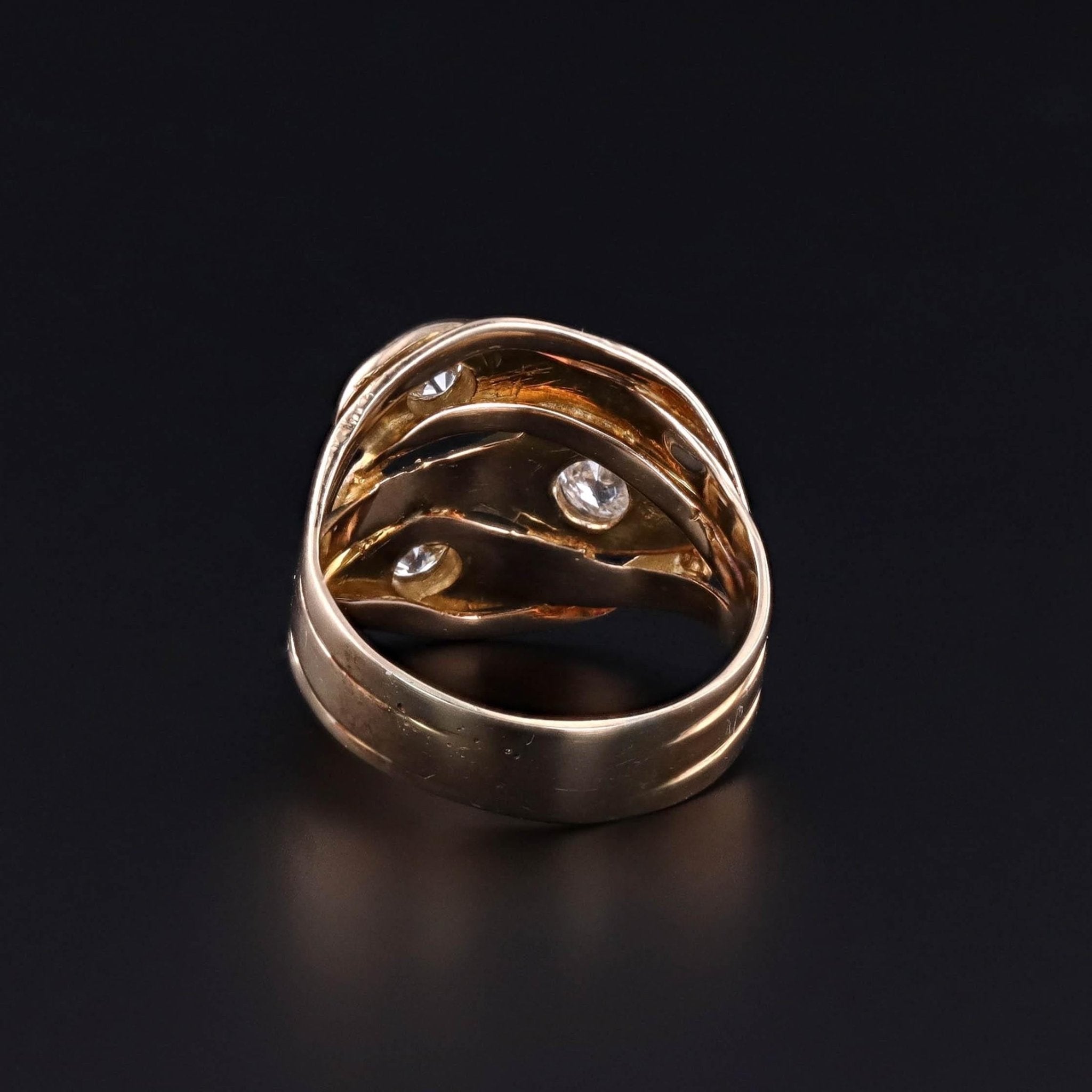 Antique Snake Ring: This Victorian era ring (circa 1890) features three entwined snakes with old European cut diamonds and green garnet eyes.