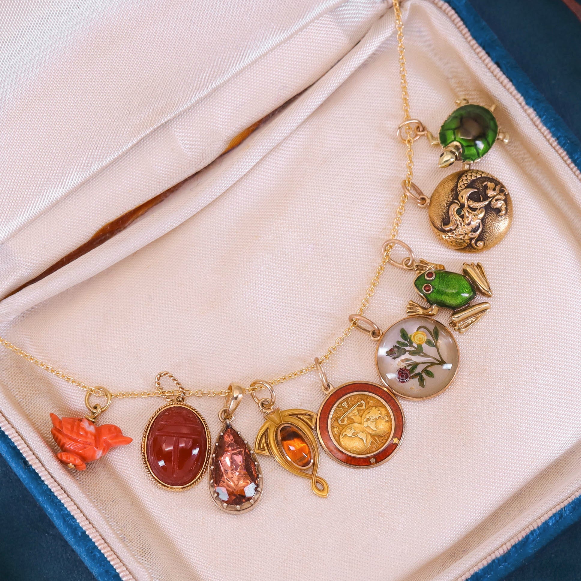 Measuring 0.9 inches from the top of the jump ring to the base by 0.6 inches wide, it is in great condition with the enamel showing only minimal signs of age. The gold content has been confirmed using XRF (x-ray fluorescence) analysis and jeweler’s acid testing, ensuring authenticity and quality for the discerning collector.