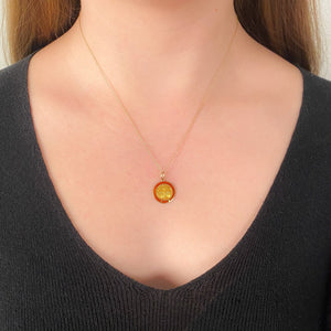Originally a vintage pin, the piece has been artfully transformed into a pendant with the addition of a 10k gold jump ring bail, offering a fresh way to wear this miniature work of art.