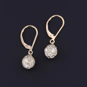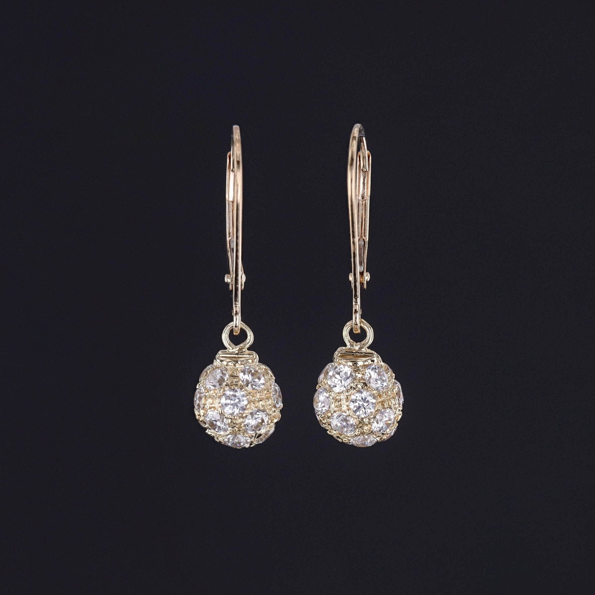 These vintage earrings (circa 1990-2000) feature orbs of 14k gold and glittering cubic zirconia accents.