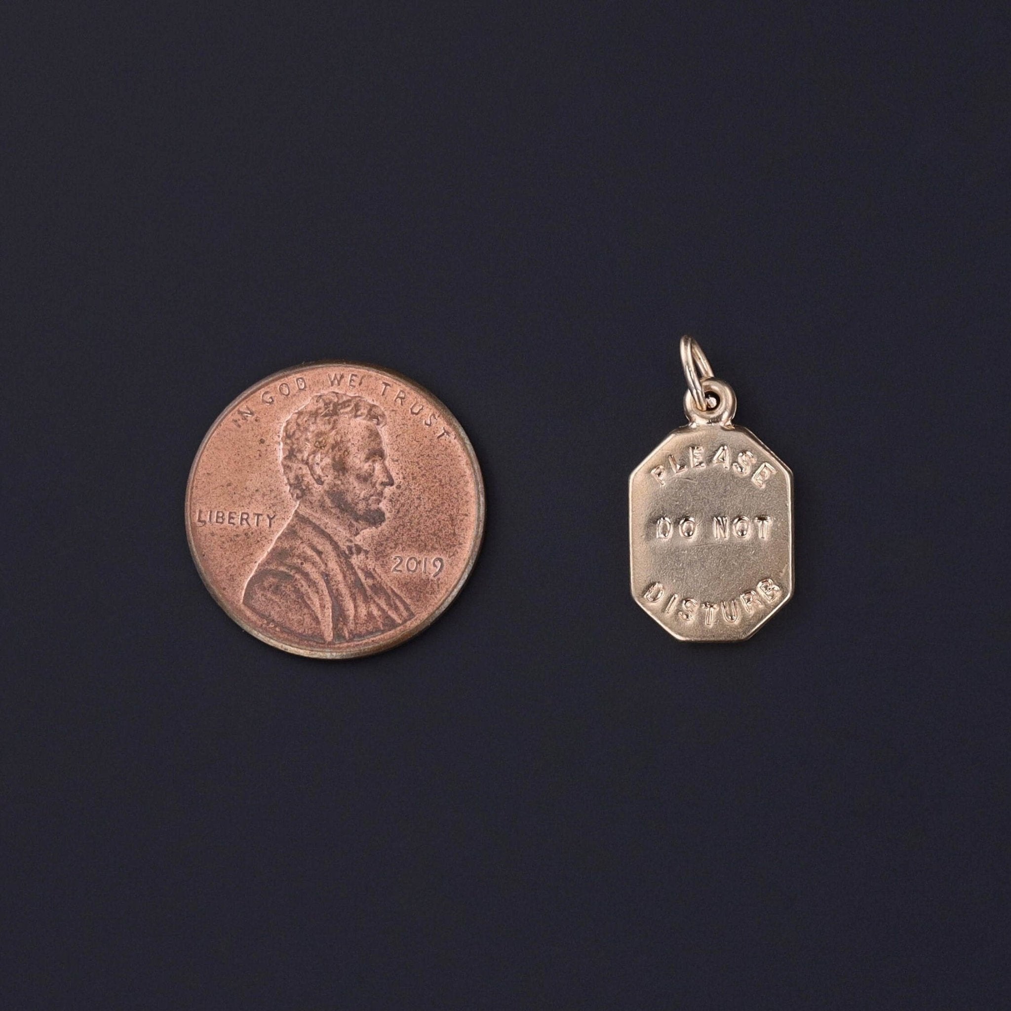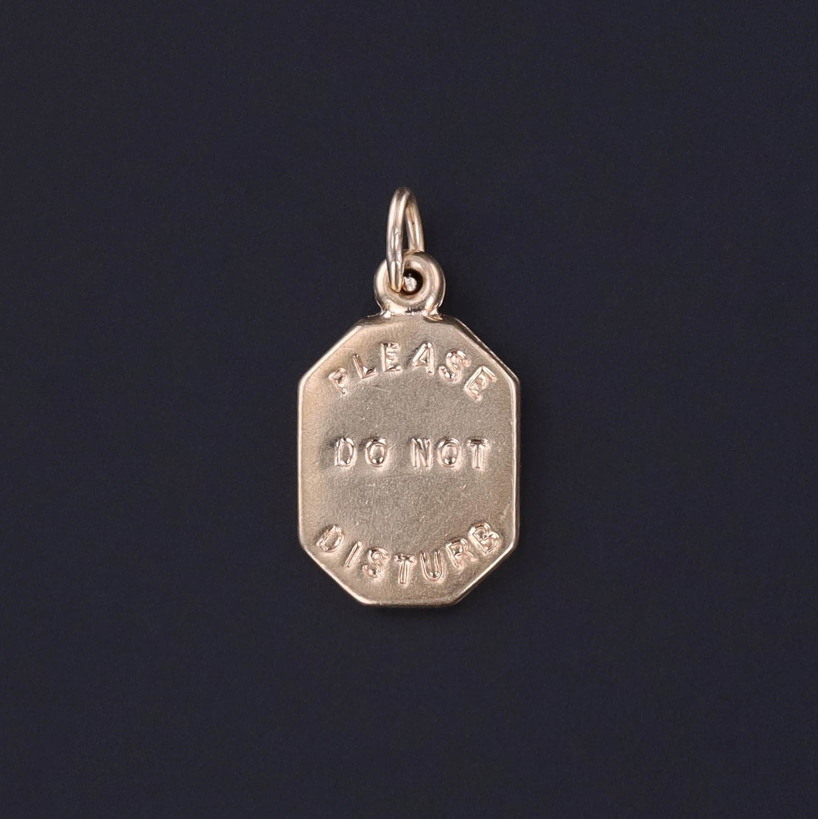 This fun vintage charm (circa 1960-1980) features a double sided 'do not disturb' sign of 10k gold.