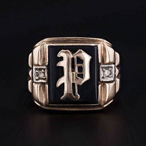 Vintage Onyx 'P' Initial Ring of 10k Gold