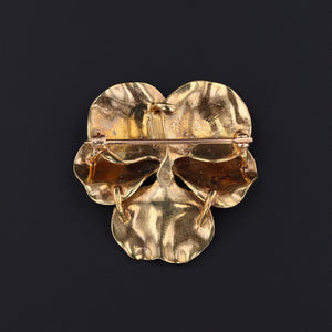 This realistically rendered pansy (circa 1920-1930) features vibrant yellow enamel with hand drawn veining and a lustrous pearl at its center.